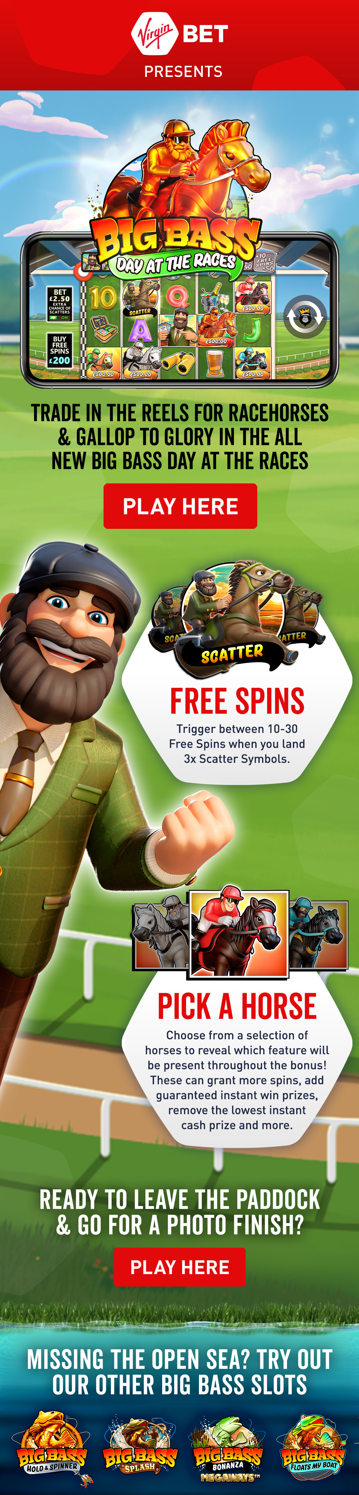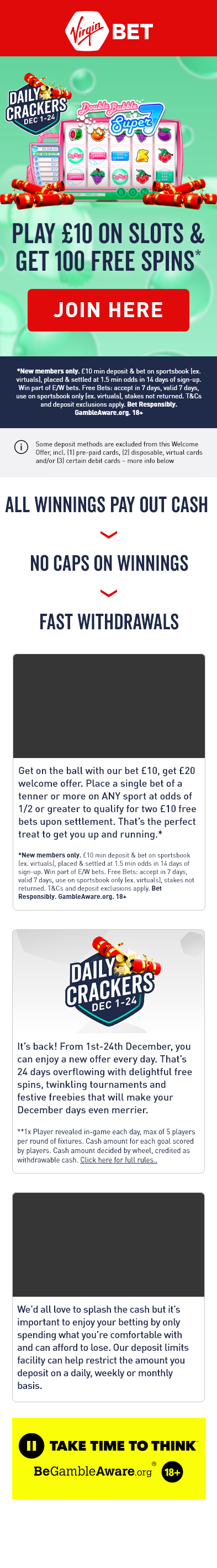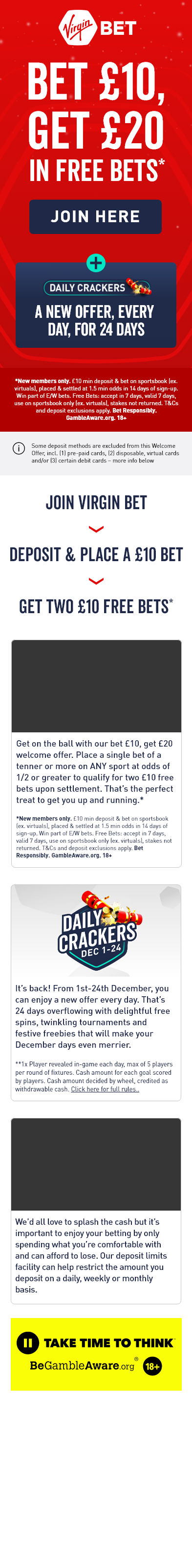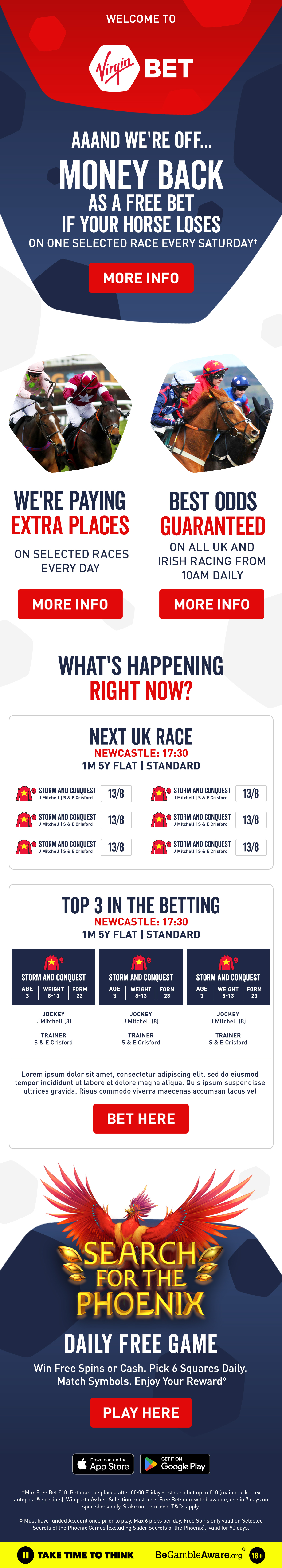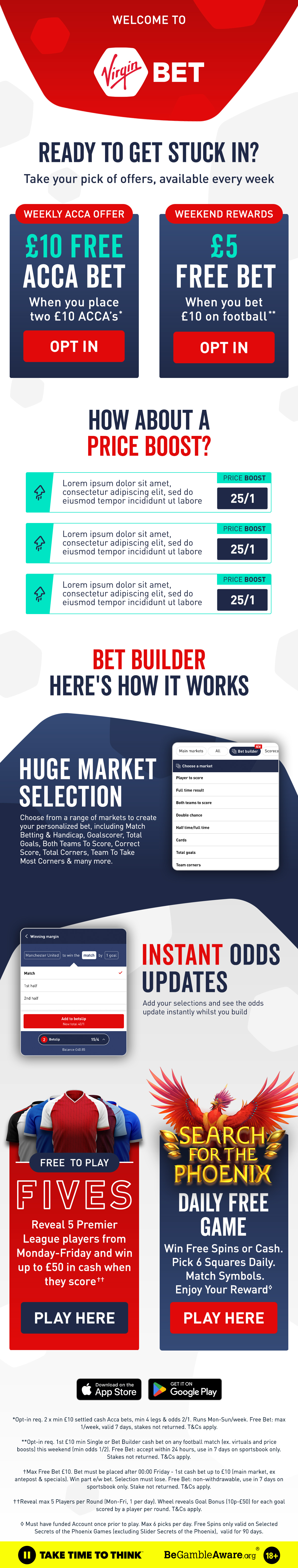 A selection of HTML banners, emails, landing pages and videos created to promote and support various Virgin Bet betting offers and marketing campaigns.